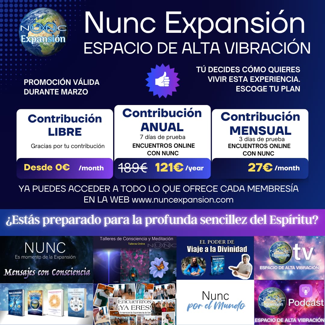 Este nuevo Espacio es accesible para las membresías de contribución mensual y anual... Si perteneces a la membresía de contribución libre ya puedes ver varios extractos del último Encuentro Online en el Espacio "NUNC EXPANSIÓN TV".